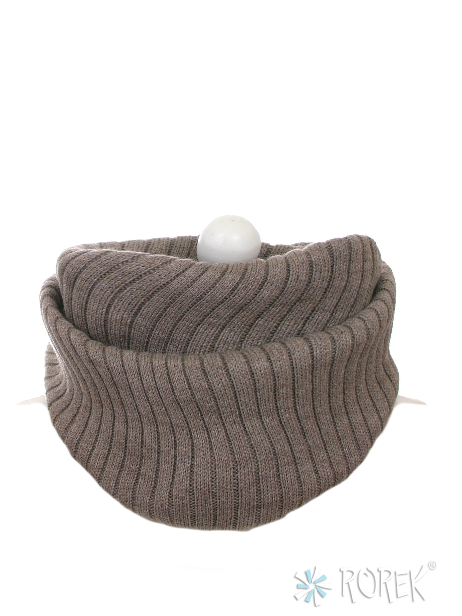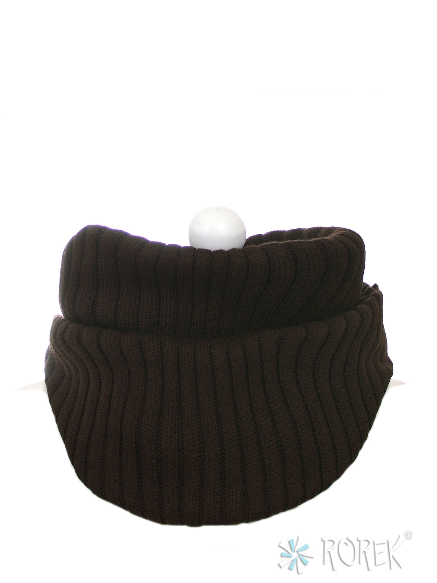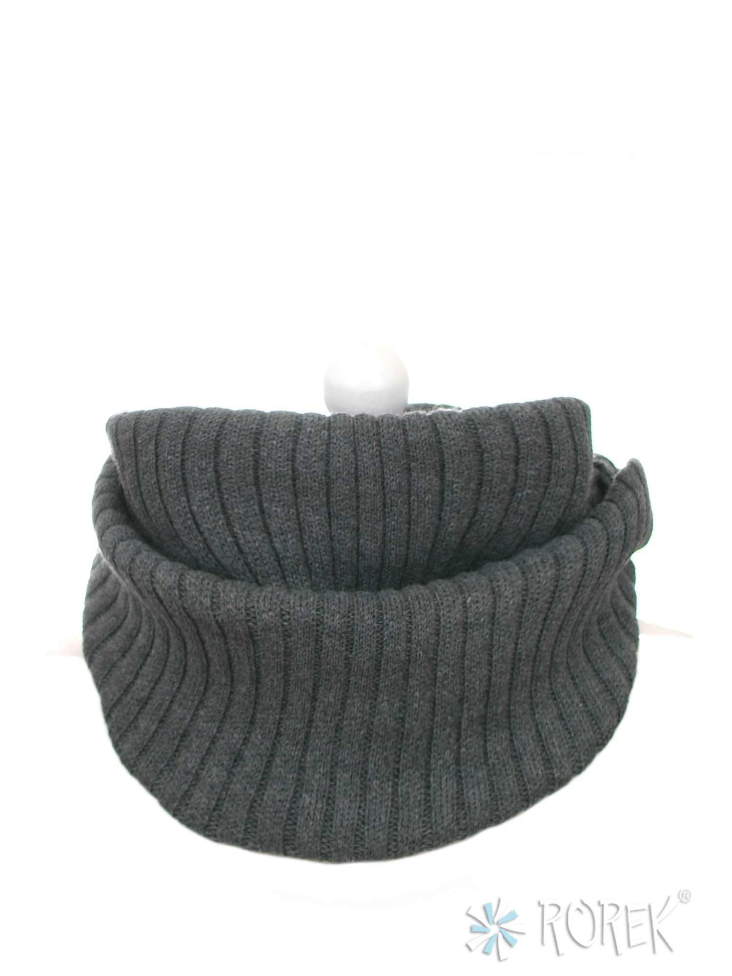 Komin damsko - męski o gładkim, drobnym splocie, zakładany w " ósemkę ".