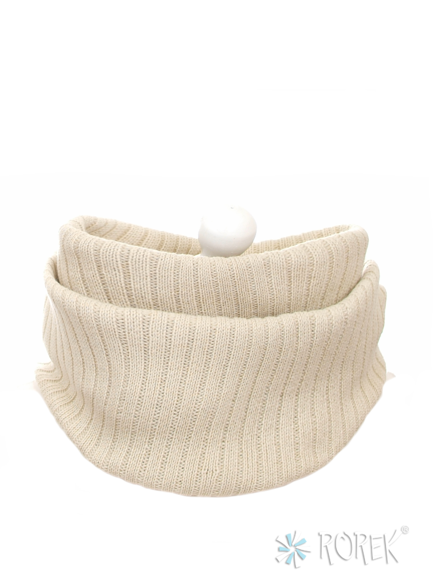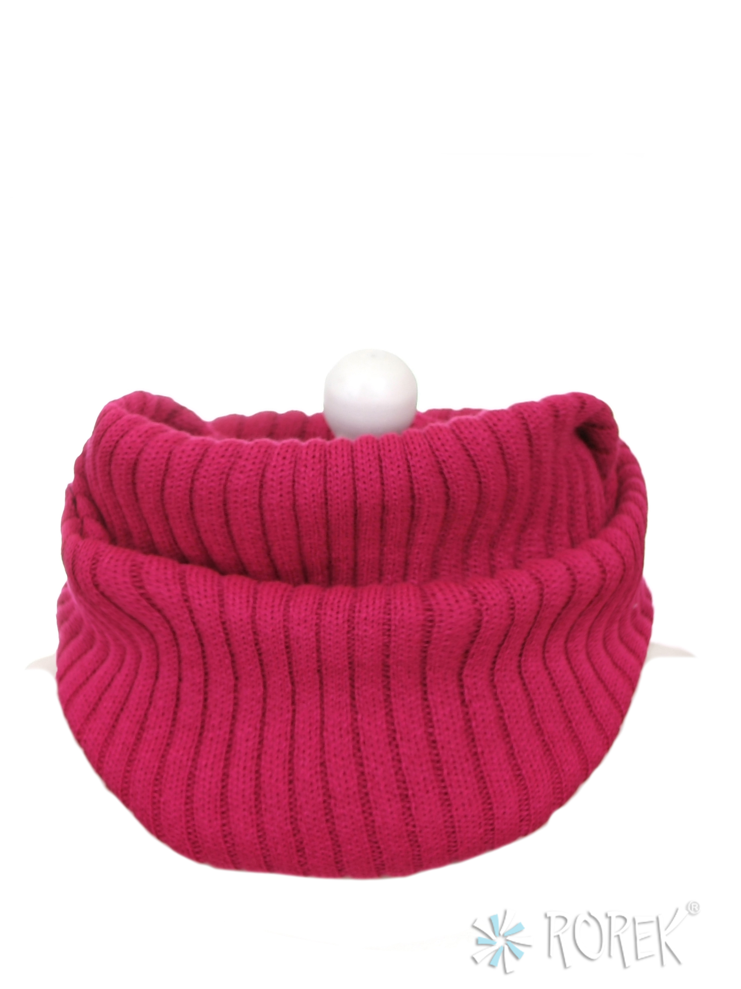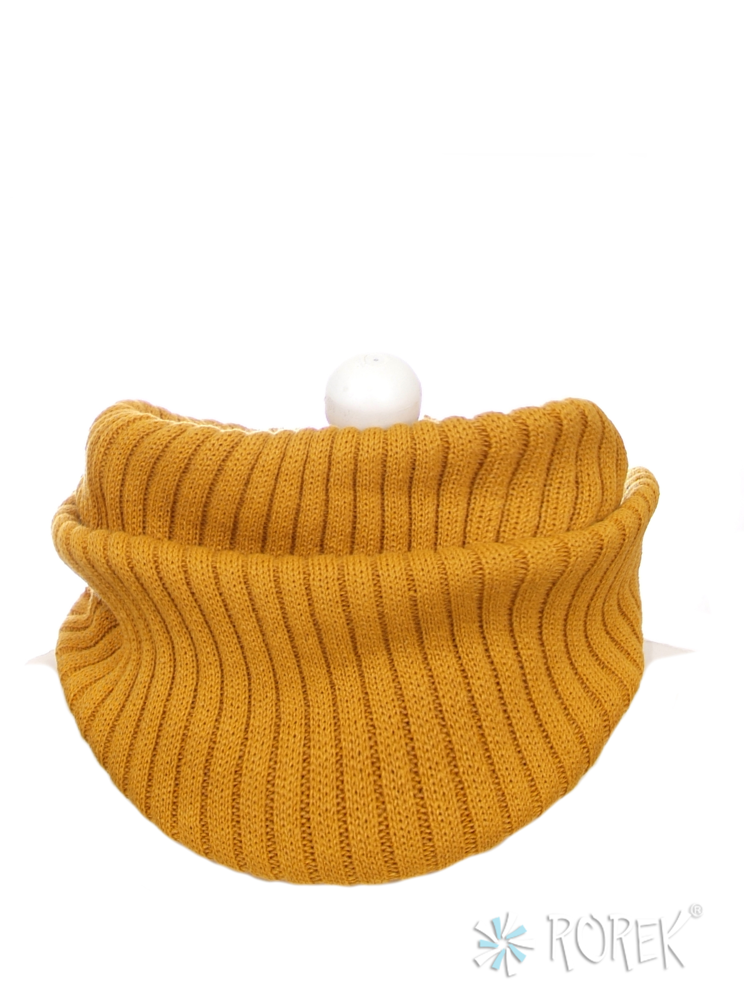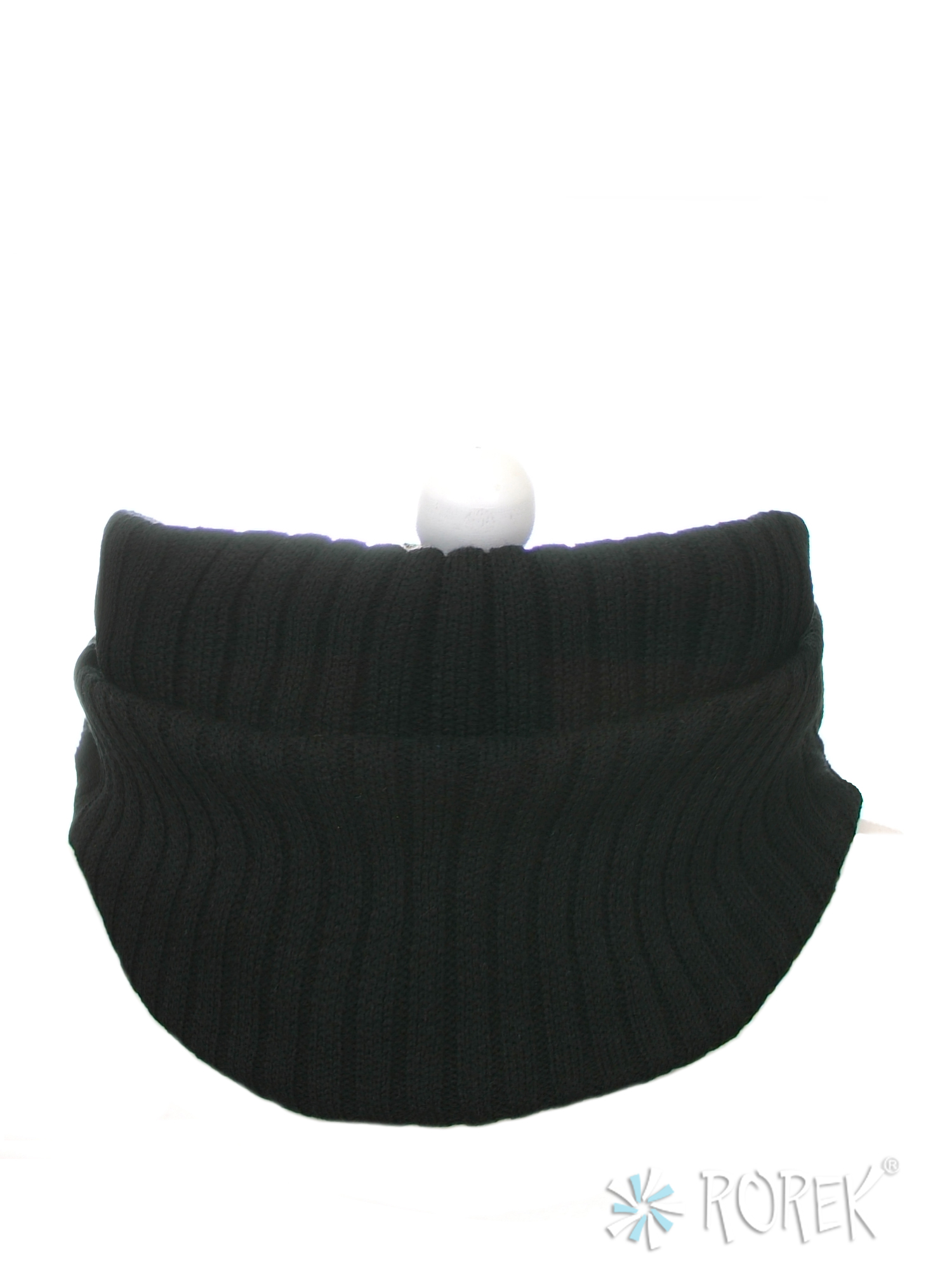 Komin damsko - męski o gładkim, drobnym splocie, zakładany w " ósemkę ".
