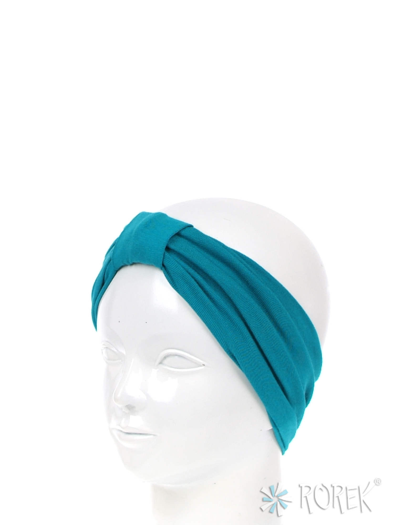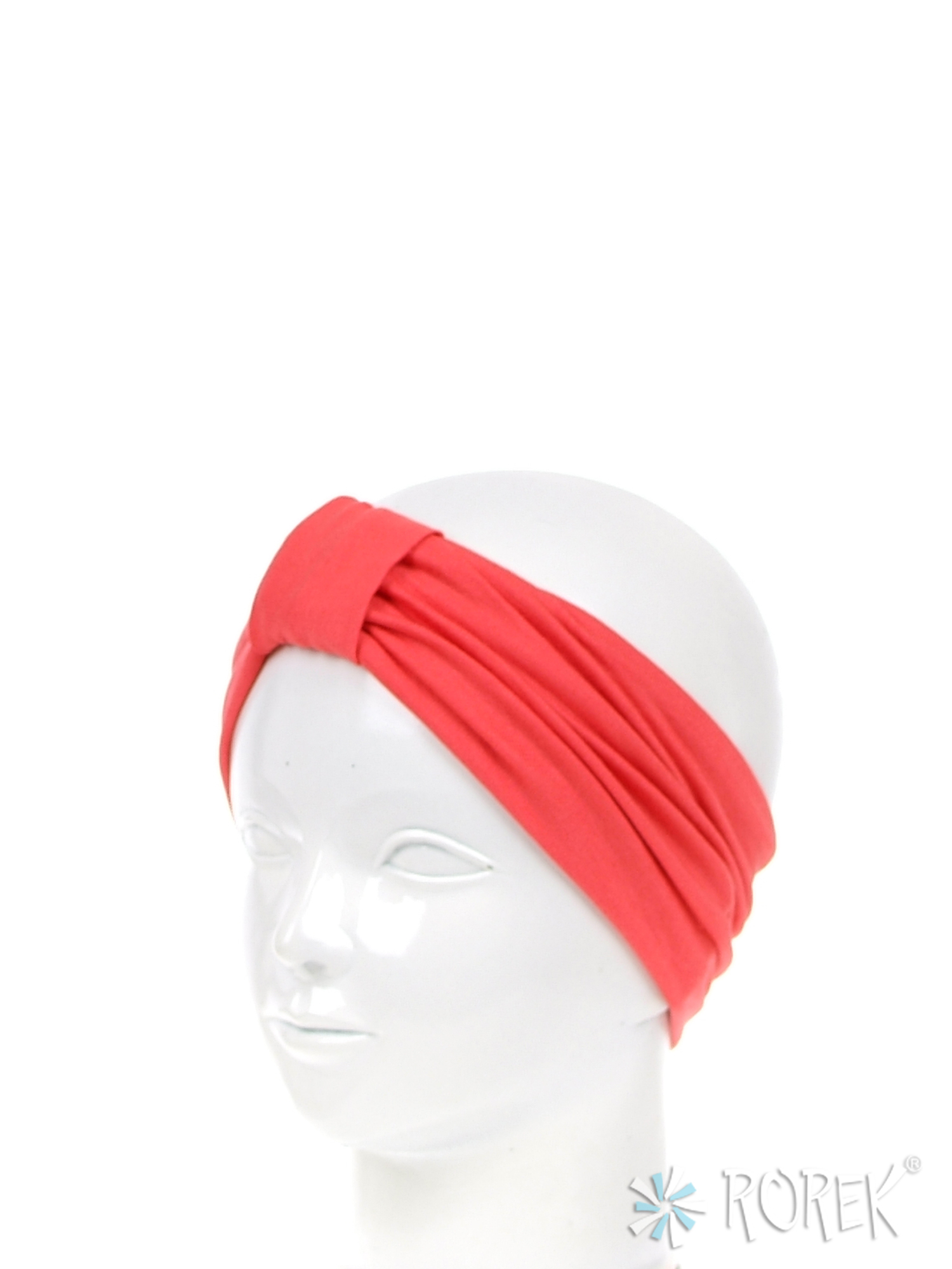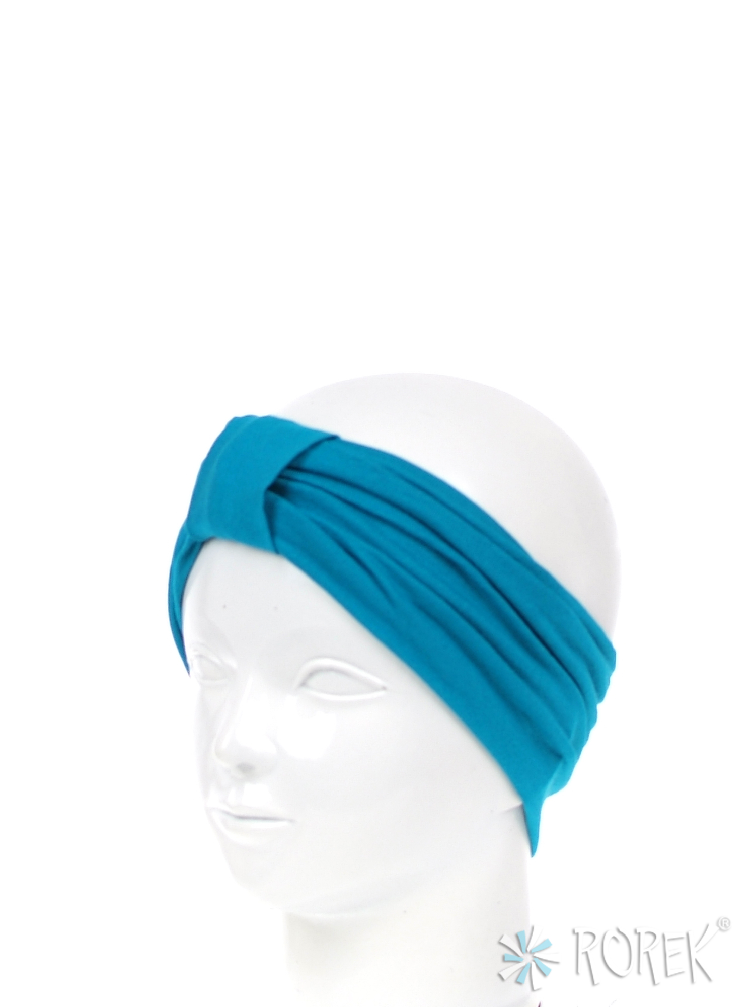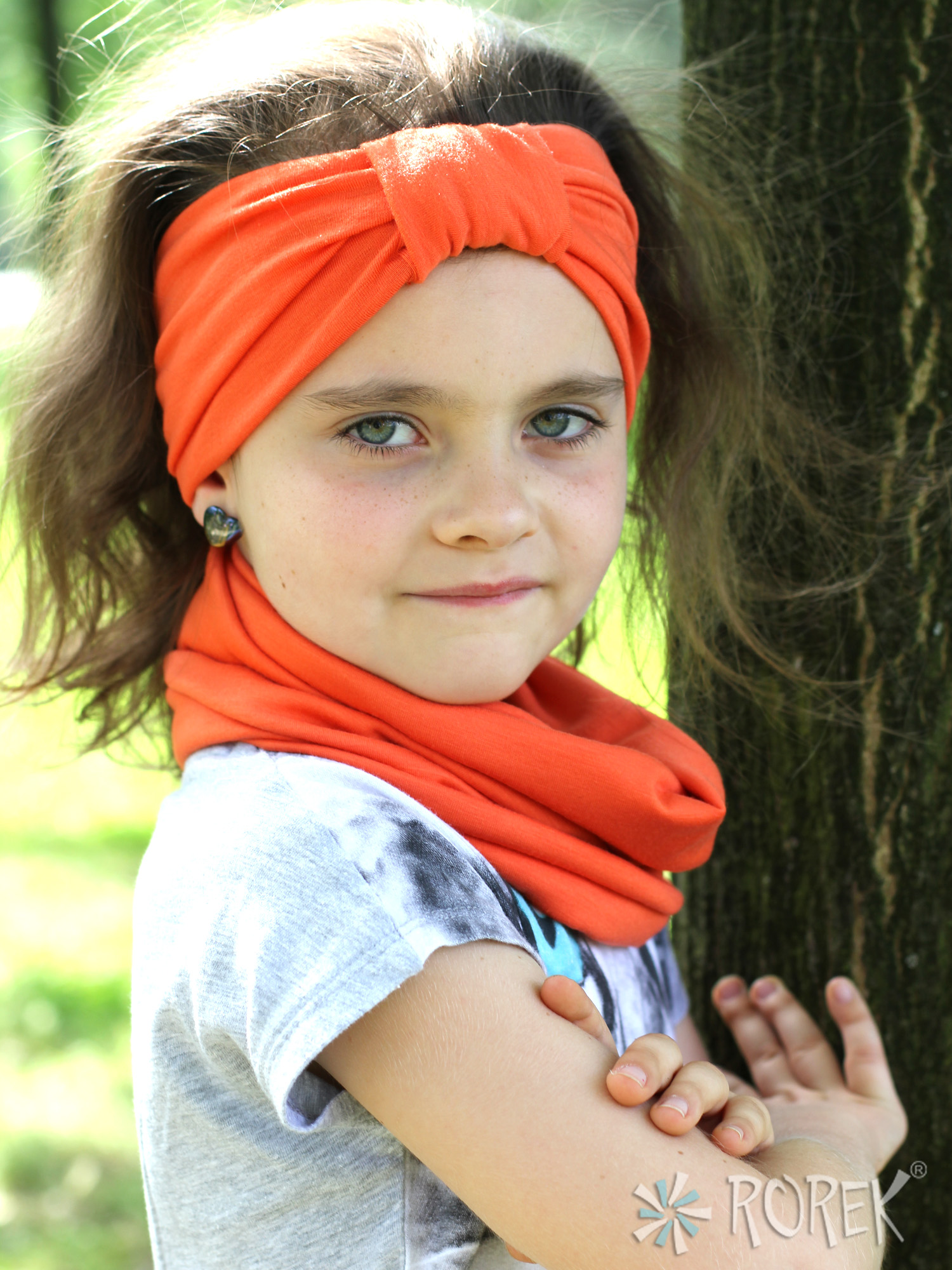 Letnia opaska dziecięca z ozdobnym ściągaczem, delikatnie marszczona, wykonana z lekkiej tkaniny bawełnianej.